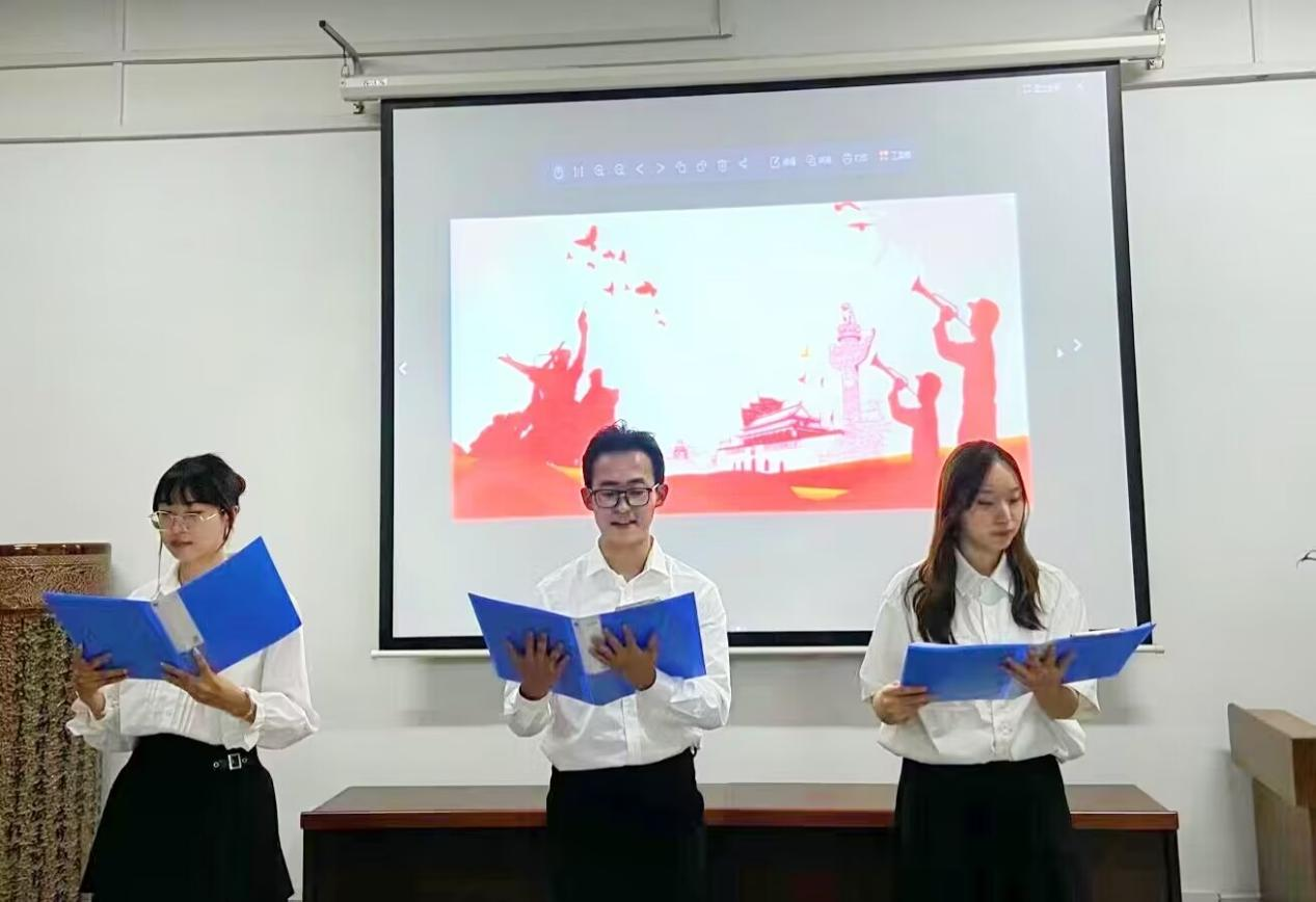 书韵飘香,尽染芬芳。同学们以朗诵的形式,展现新时代青年的青春风采,彰显时代风貌,共同以拼搏奋斗的精神,向祖国致敬,向党致敬,向那些千千万万为人民谋幸福,为民族谋复兴,为世界谋大同的人民英雄们致敬。27组选手各展风采,其中沙嘉豪、王维佳、杨函娱带来的《永不消逝的声音》把我们的思绪拉回到1940年冬天,让我们知道“70年来广播记录了中国发展变化的每一步,而永不消逝的电波承载着一段段永不褪色的记忆”。比赛紧张进行,有序推进,最终《百年恰是风华正茂》组的孙宗晟、陈纪延、王淑娴、王芳晨同学和《永不消逝的声音》组的沙嘉豪、王维佳、杨函娱同学荣获一等奖。本次比赛在选手们、评委们和主持人的完美配合下圆满结束。