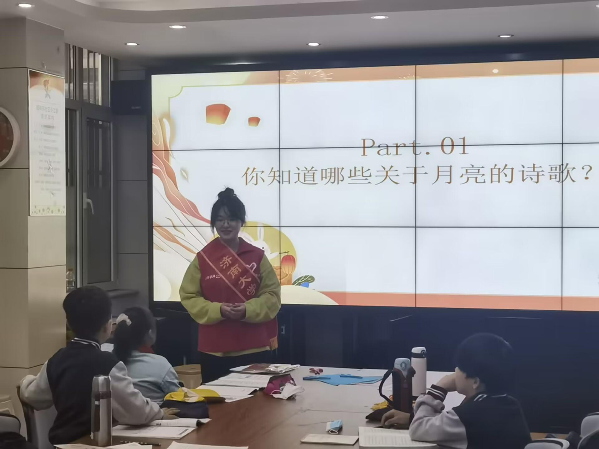 活动开始前,志愿者们充分了解中华诗词蕴含的诗意,深入挖掘其中的传统文化,做了充分的准备。活动开始后,志愿者提出问题,引出中华诗词的主题。小朋友们积极响应,分享了关于月亮的古诗,展现了青少年对古诗的热情。紧接着,由《嫦娥》这首诗引出了中国古代传统神话嫦娥奔月的故事,呈现了中国古代美好的爱情与幻想。最后,志愿者们开展了“动手做一做”活动,小朋友们自己动手,用折纸折出了属于自己的月亮和小兔子,教室里洋溢着欢声笑语。本次活动圆满结束。