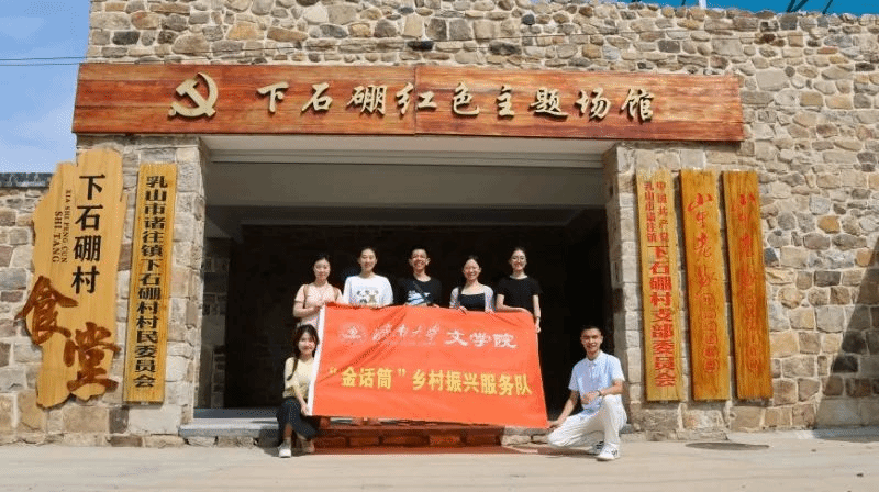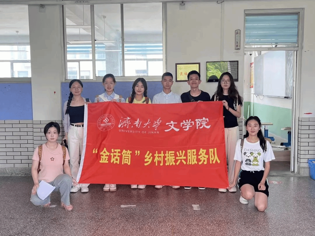 “金话筒”乡村振兴服务队赴威海乳山展开社会实践活动。活动以爱国主义教育为主线,以基层服务为副线,同步开展了团团小课堂志愿授课、冯德英文学馆研习、乡村振兴项目走访与农发行座谈、老党员采访、乳山二中英雄主题宣讲、下石棚村红色场馆参观等一系列活动。