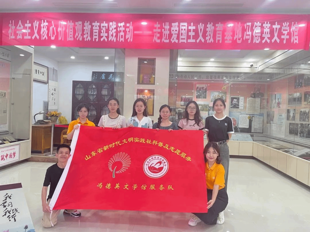7月10日上午,团队前往乳山著名红色教育基地——冯德英文学馆进行参观学习。冯德英是乳山著名革命小说家,他的“三花”经典集中反映了胶东半岛人民艰苦卓绝、英勇顽强的革命斗争,是山东红色文化重要组成部分,其作品被一代代人传诵。团队成员认真学习、交流感悟,充分了解了冯德英的伟大事迹,并在展馆内录制了宣讲视频,计划通过视频微课的形式,将这份宝贵的精神财富传递给更多的人。