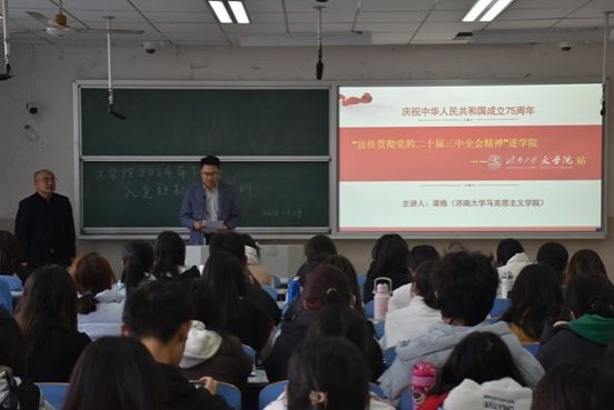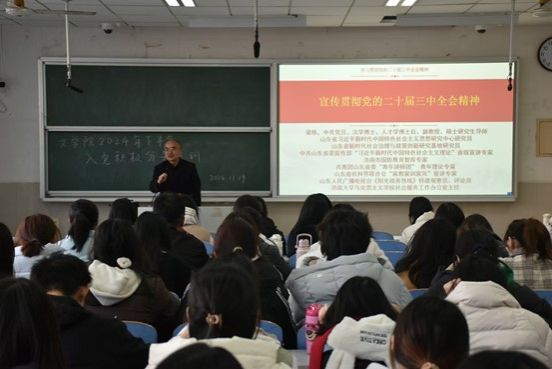 梁栋老师为入党积极分子进行了贯彻党的二十届三中全会精神的党课培训。