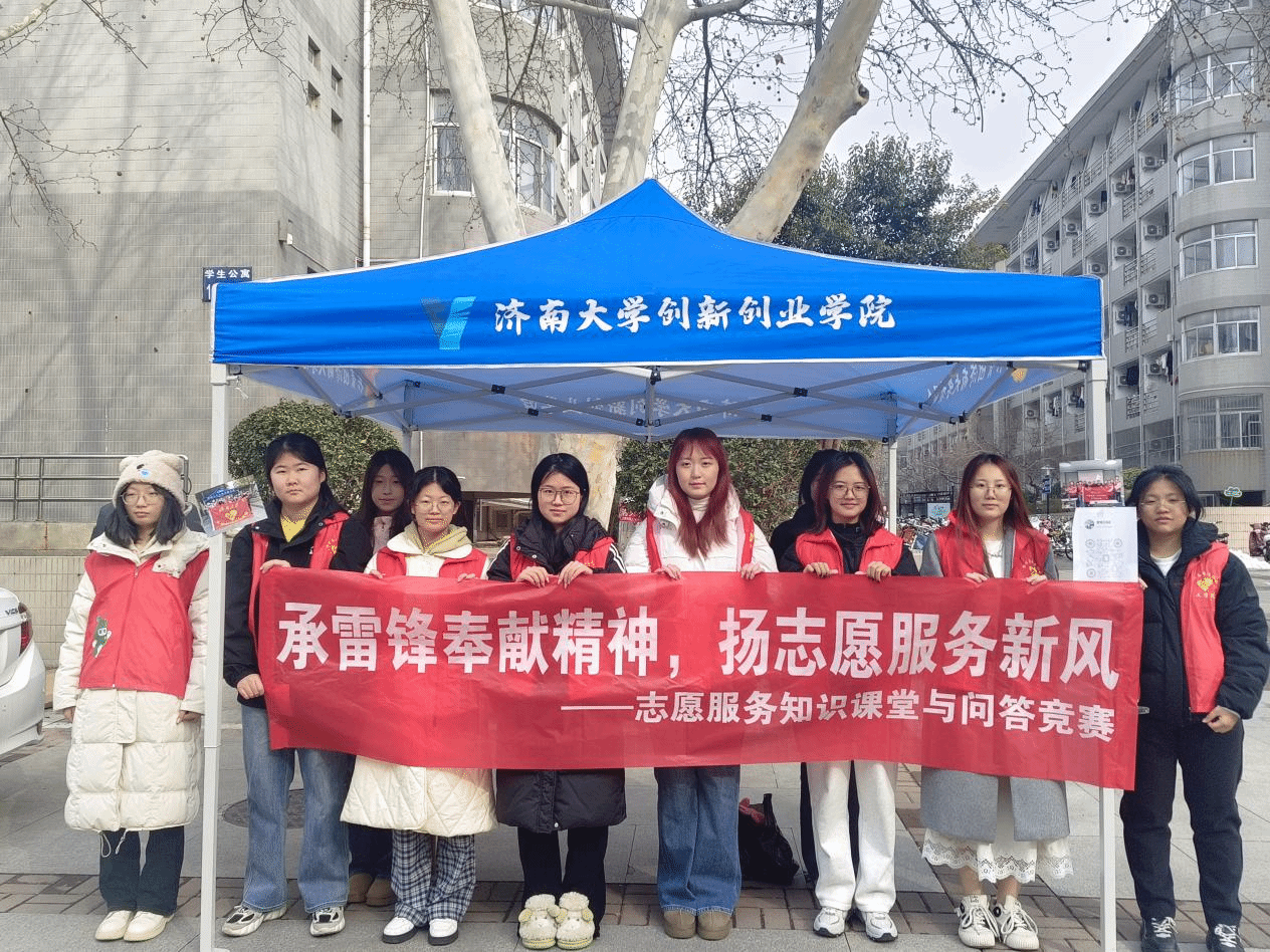与此同时,“承雷锋奉献精神,扬志愿服务新风”志愿服务知识课堂与问答竞赛也在如火如荼地进行着。在教室里,参赛选手们经过充分的前期准备,在现场竞答环节展现出了扎实的知识储备,流利作答间尽显对志愿服务的深刻理解。在八食广场上,志愿者们搭起帐篷,张贴横幅,向来往师生发放精心设计的传单,详细讲述雷锋——这位伟大战士的生平事迹,播撒了雷锋精神的种子。从课堂到广场,从理论到实践,志愿者们以知促行、以行践知,让雷锋精神在新时代的校园沃土上焕发出新的生机。