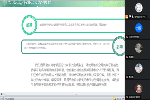 对于一个农村出生的高考学子很有可能决定着他们今后的人生轨道。此这次志愿填报服务活动的开展,不仅为农村高考学子提供了更加清晰完整的志愿填报信息,也使得团队六名成员在共同服务他人的同时明白了一个道理:求同存异新思路,乐于合作方能共赢。