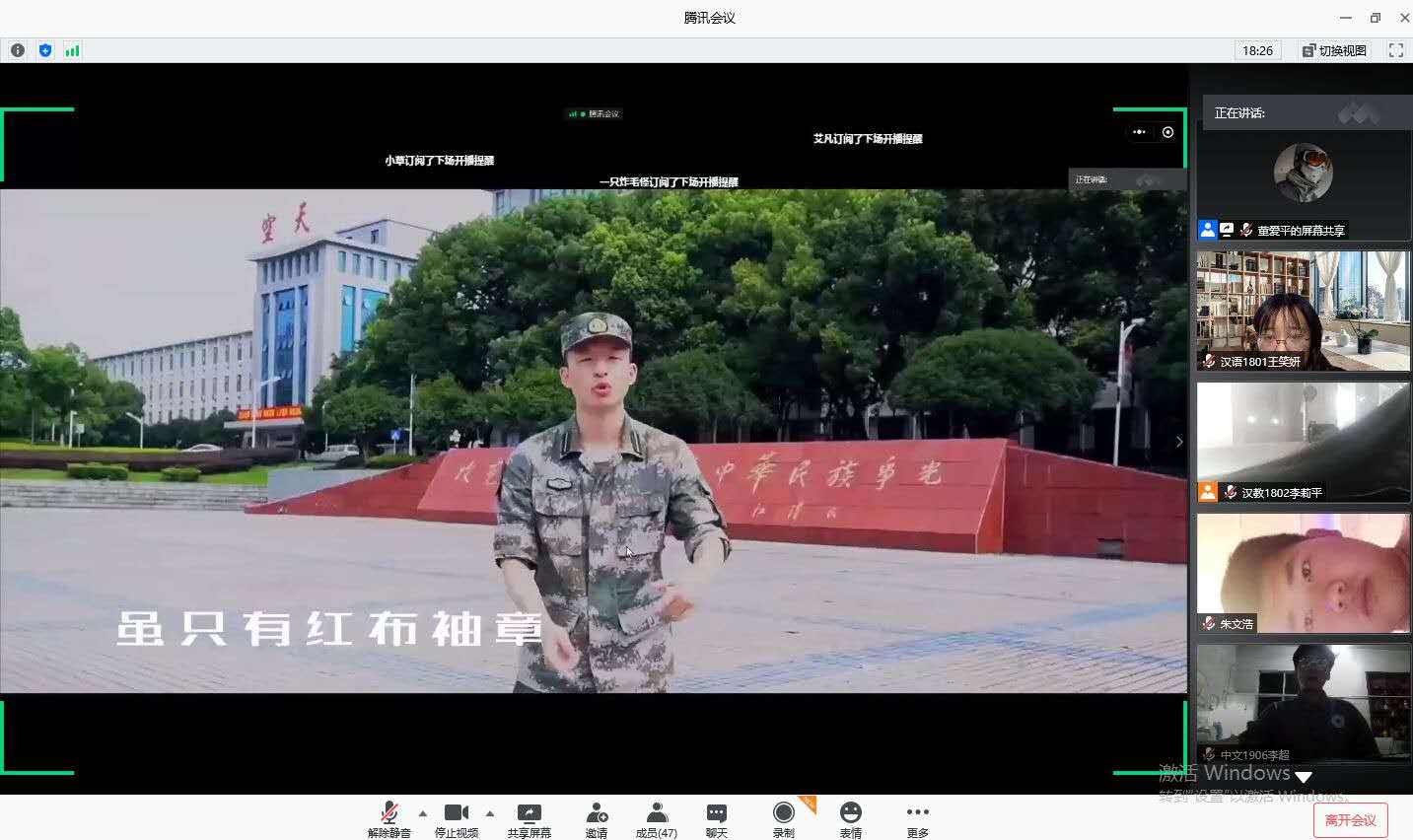 通过这次活动,同学们了解到了许多同龄人不畏牺牲,甘于奉献的感人事迹,更加清晰地认识到了时代赋予自己的使命与担当,感受到了青春的力量。作为一个青年学子,一个团员干部,我们都应该坚守初心使命,增强本领才干,努力开拓进取,勇于牺牲奉献,用青春热血描摹大写人生。