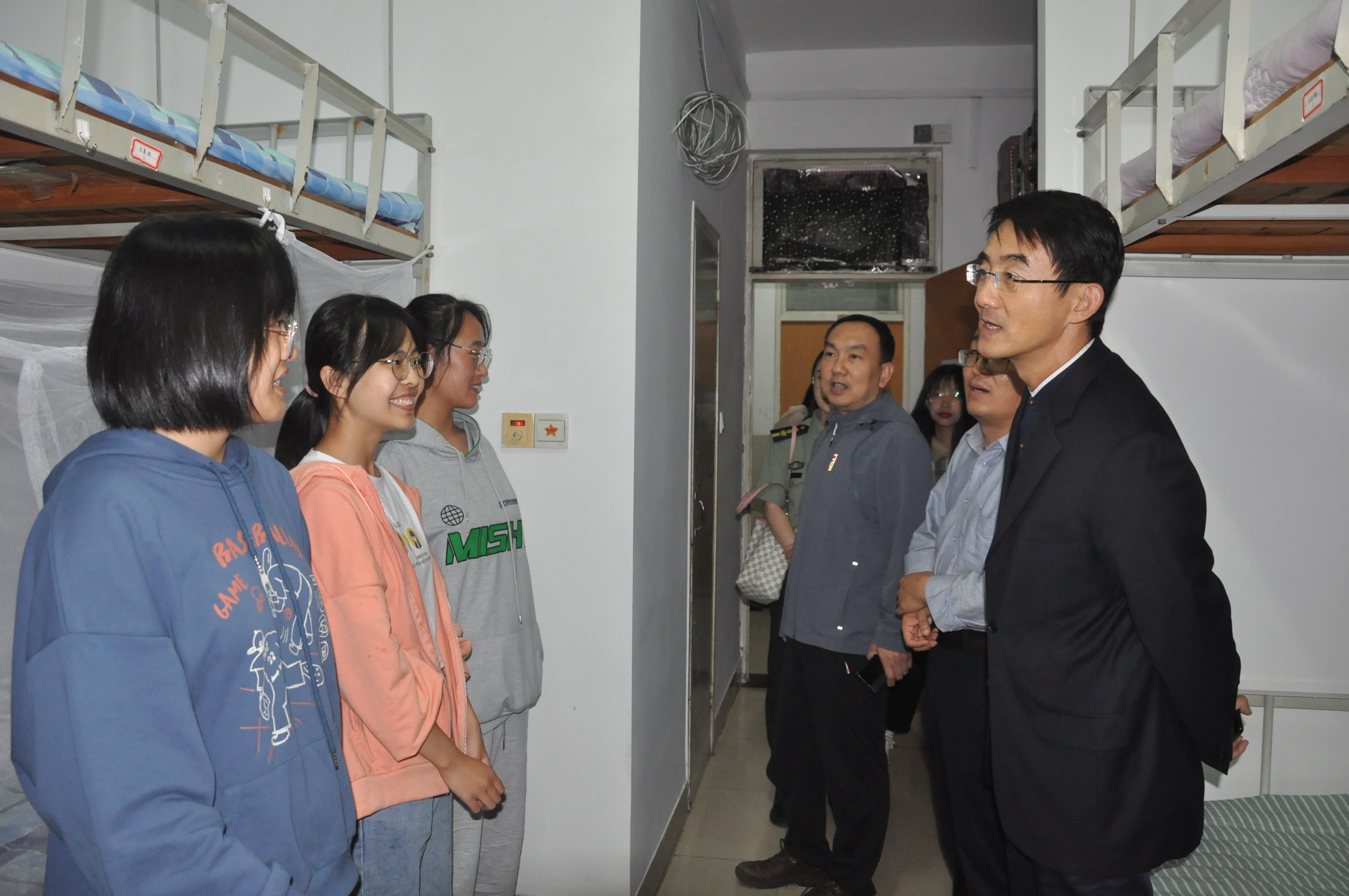 党委书记陈卫东、院长张兵、党委副书记、副院长朱红岩、20级新生辅导员赵丽丽老师于10月2日晚来到新生宿舍,向他们送上关心与问候。
