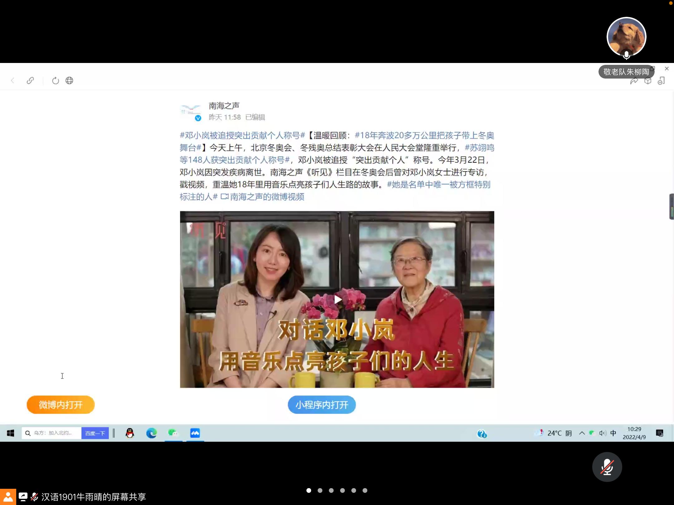 初心志愿者协会于4月9日开展了学习邓小岚同志优秀精神主题活动,一起重温了北京冬奥会、冬残奥会“突出贡献个人”邓小岚同志在18年里用音乐点亮孩子们人生的温暖故事。