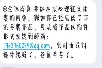 心理协会工作人员有条不紊、分工明确,顺利完成前期的宣传活动,建立了活动群,确定了活动参与人员,同时明确了活动形式、时间等工作。活动过程中,参与人员通过文字的形式表达内心深处的情感浮动,抒发自己的心声,并将作品上传至指定邮箱。活动结束后,澳门六合彩App