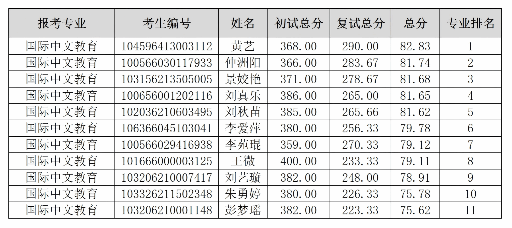 现将国际中文教育(045300)和出版(055300)硕士研究生复试调剂(一批次)考生成绩予以公示。