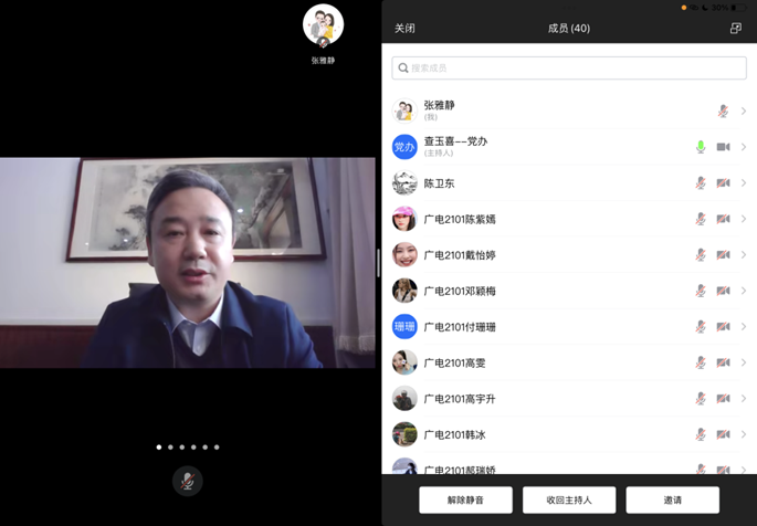 学生工作办公室主任张雅静与广电2101班全体同学共同参加。