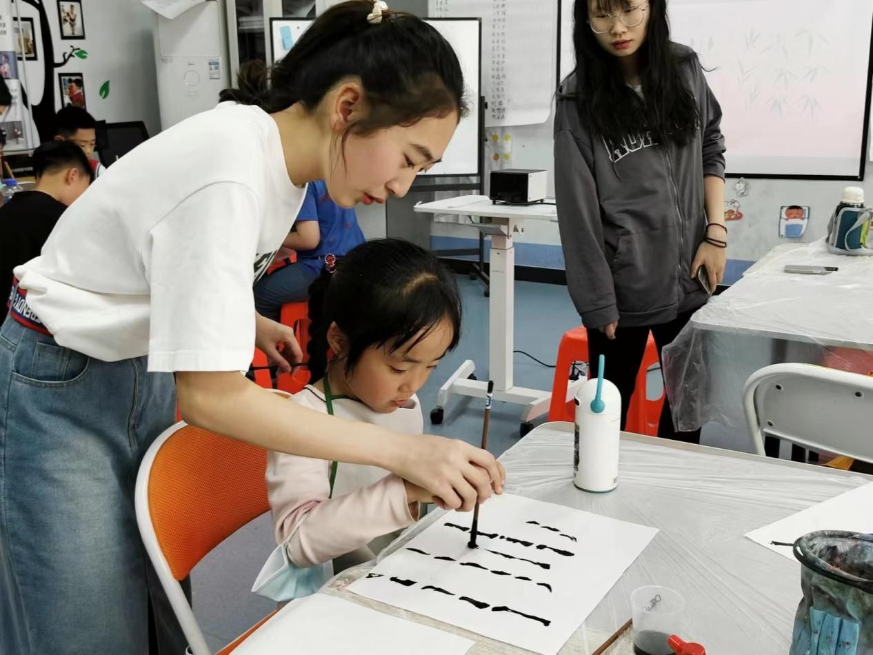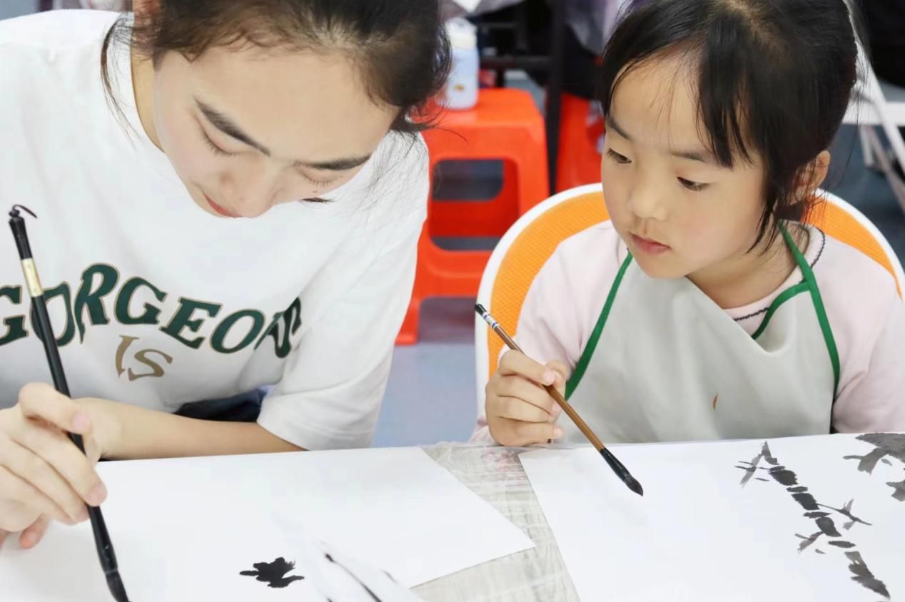 活动中,志愿者们以历史人物、历史故事为切点,以绘画视频、经典作品为载体,为参加活动的小朋友们展示了中国画的魅力。小朋友们在轻松愉快的氛围中深深地被国画之美吸引。随后,志愿者们教授小朋友如何握毛笔、画竹子,分组进行“大手握小手”绘画帮助指导。小朋友们热情高涨,注意力集中,提笔落笔之间,创作出属于自己的“竹”,现场充满欢声笑语。