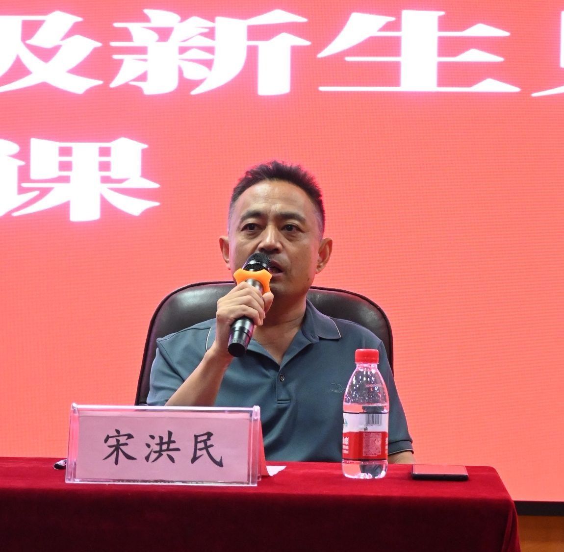 教授宋洪民作为教师代表发言。他结合执教经历与同学们分享了宝贵的学习经验与人生感悟,建议同学们珍惜学习机会,树立明确的目标,为实现理想而不懈努力。期待同学们四年中既学有所成,又能与老师结下深厚情谊。