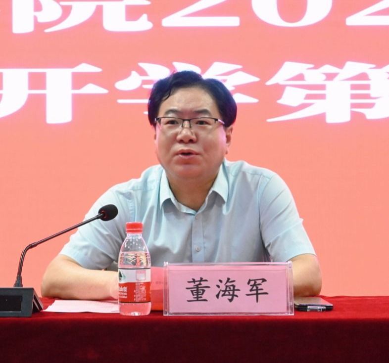 的基本情况。在中华人民共和国成立75周年之际,董海军鼓励新生学子要聆听时代召唤,把握时代脉搏。并对新生们提出了三点期望:一是要厚植家国情怀,志存高远,为民族复兴而奋斗;二是要坚持勤学慎思,笃行致远,在文学世界里自由翱翔;三是涵养进取品格,脚踏实地,从平凡生活中汲取营养。
