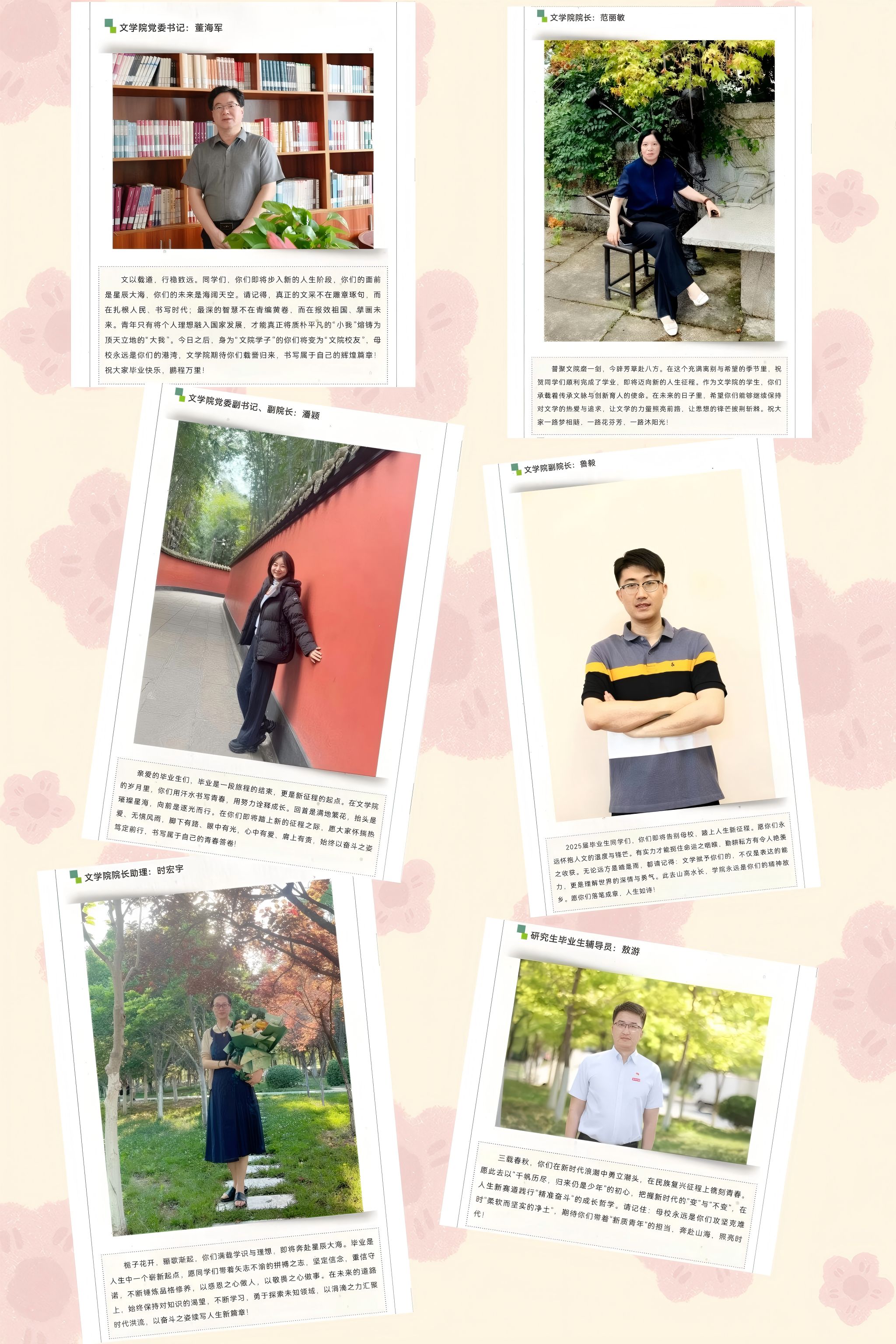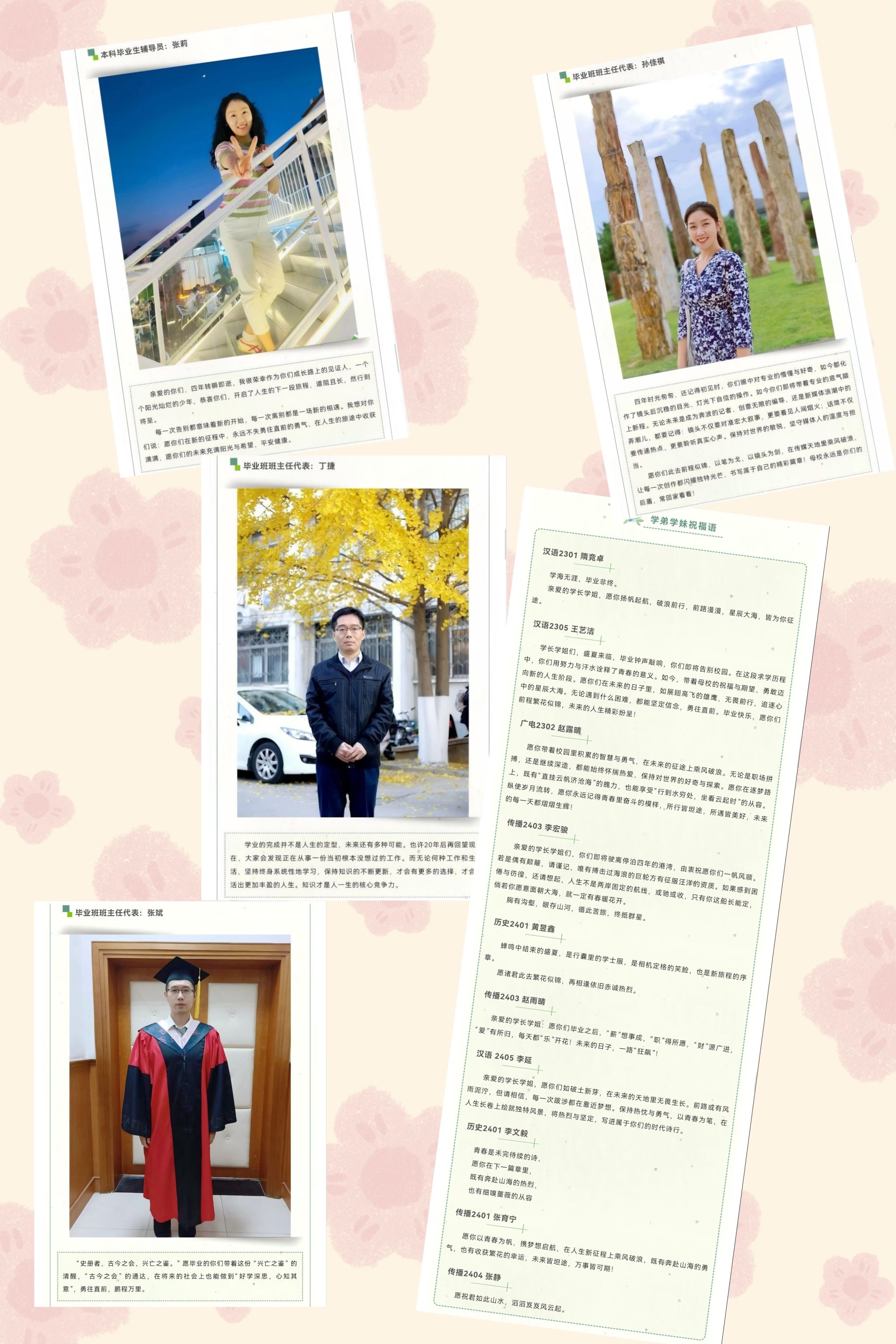 的学生,你们承载着传承文脉与创新育人的使命,希望你们能够继续保持对文学的热爱与追求,让文学的力量照亮前路”“学海无涯,毕业非终,亲爱的学长学姐,愿你扬帆起航,破浪前行,前路漫漫,星辰大海,皆为你征途”一句句温情寄语,表达了对毕业生们的殷切期许和深情叮嘱,激励他们在未来的岁月中不断追求卓越,创造属于自己的精彩人生。