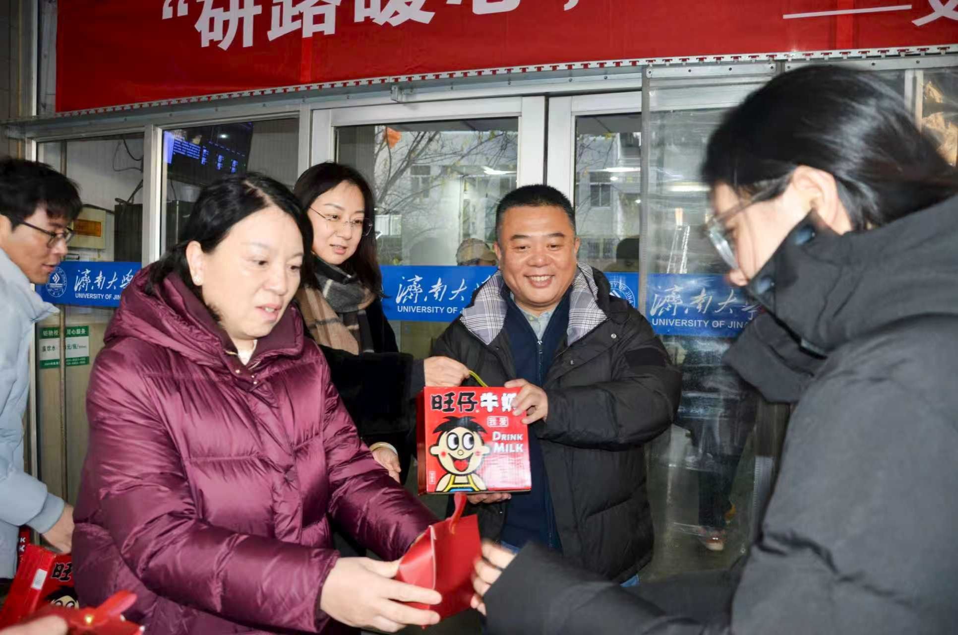 现场氛围温馨融洽,澳门六合彩App 老师为每一位到场的同学送上精心准备的慰问品:每宿舍一箱“旺仔牛奶”,寓意“才气旺旺、好运连连”;个人专属小礼盒中,精美书签寄托“书写未来,落笔有神”的祝愿,“柿柿如意”钥匙扣则承载“事事顺心、如愿以偿”的美好寓意,每一份礼盒打包、每一箱牛奶搬运都凝聚着澳门六合彩App 师生对2022级考研学子们的深情厚谊。礼物虽轻,情谊深重,同学们纷纷表达感谢之情。考研学生如是说:“澳门六合彩App 的关怀让我们倍感温暖,也更有力量迎接最后的挑战。我们定不负期待,奋力一搏!”