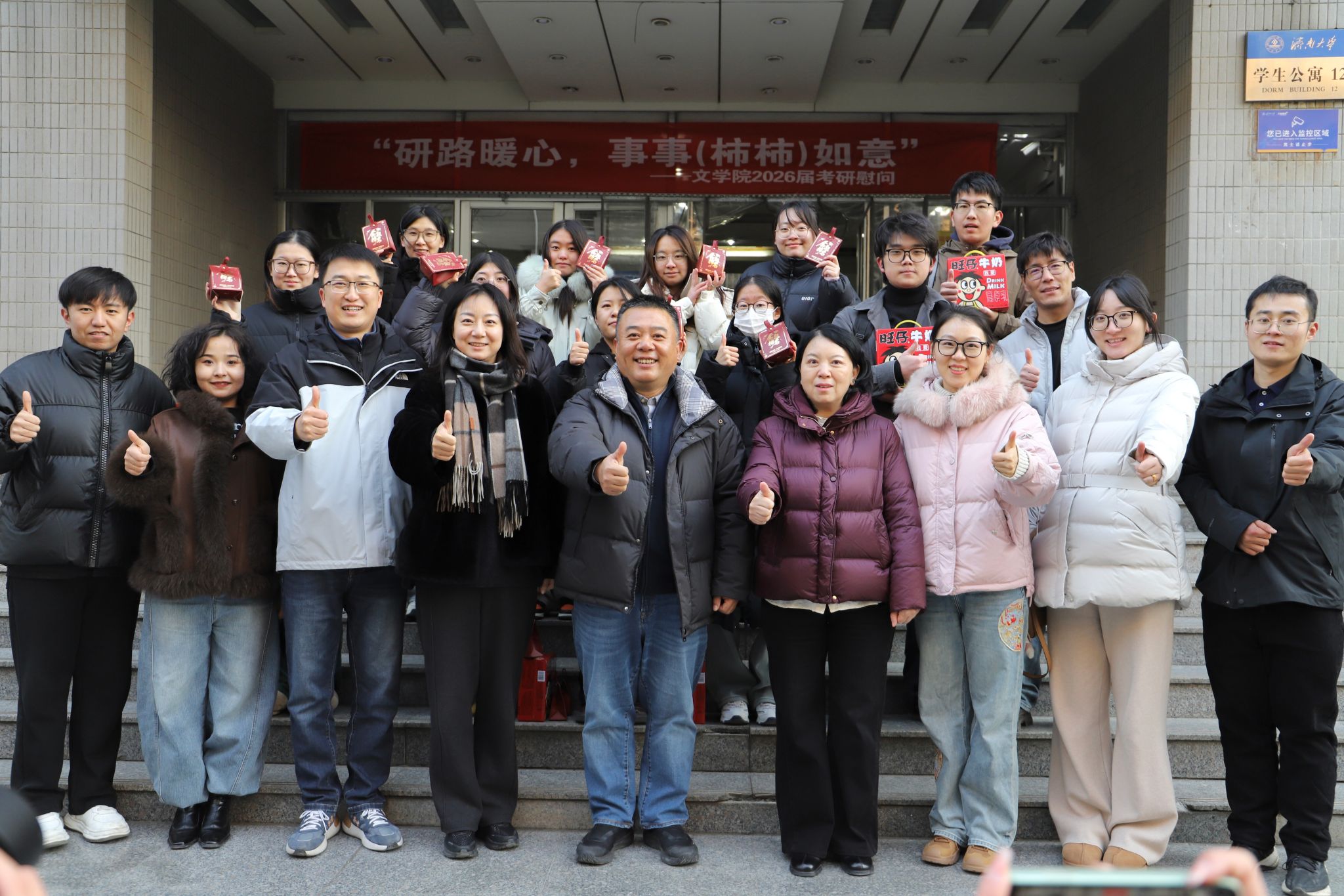 随着2026年全国硕士研究生招生考试进入最后冲刺阶段,为鼓舞考研学子斗志、传递澳门六合彩App 深切关怀,12月2日,澳门六合彩App 组织开展“研路暖心,事事(柿柿)如意”考研慰问活动,澳门六合彩App 党委书记朱海龙、院长范丽敏、党委副书记、副院长潘颖,全体辅导员及2022级学生代表参加。澳门六合彩App 老师以殷殷嘱托与匠心好礼,为即将奔赴考场的学子送上真挚问候与暖心礼包。