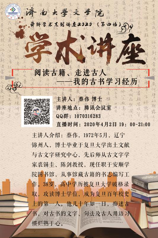 “舜耕学术系列讲座2020”第四场如期举行,邀请复旦大学出土文献与古文字研究中心博士、安顺澳门六合彩App