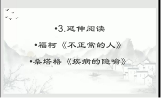 在“延伸阅读”部分,他介绍了福柯《不正常的人》、桑塔格《疾病的隐喻》;梳理了历史上的大瘟疫,分析相关历史文化;探讨了与瘟疫有关的文学作品和影视作品。