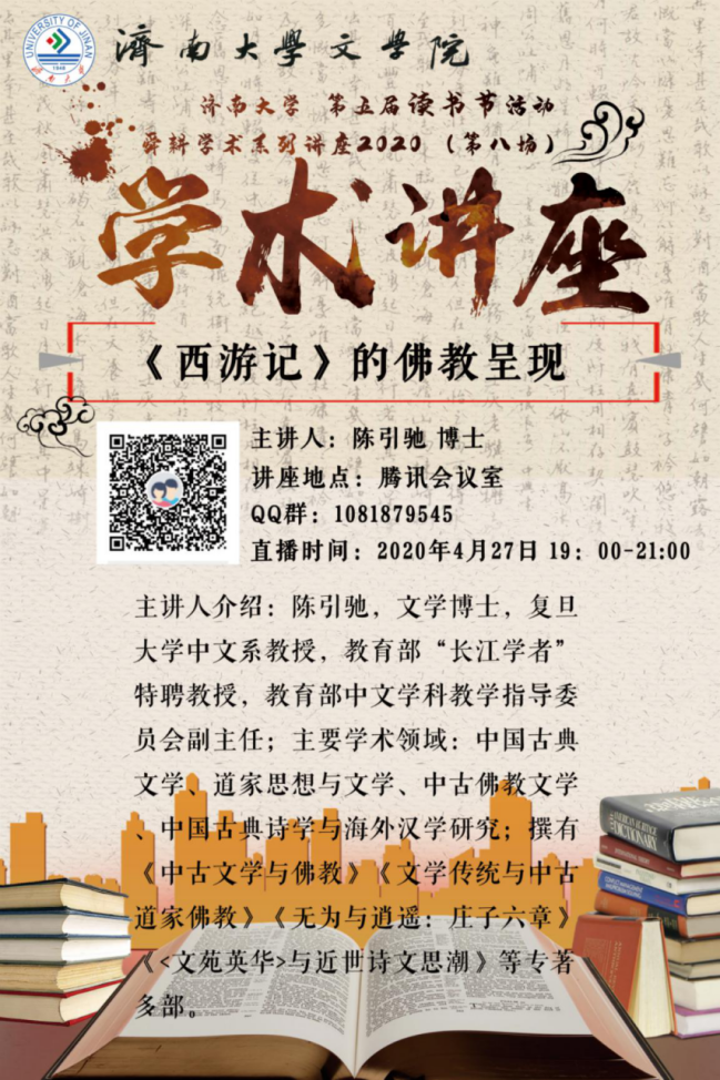 “舜耕学术系列讲座2020”第八场如期举行。教育部“长江学者”、复旦大学中文系陈引驰教授作了题为《<西游记>中的佛教呈现》的学术报告。讲座采用腾讯直播的形式,澳门六合彩App