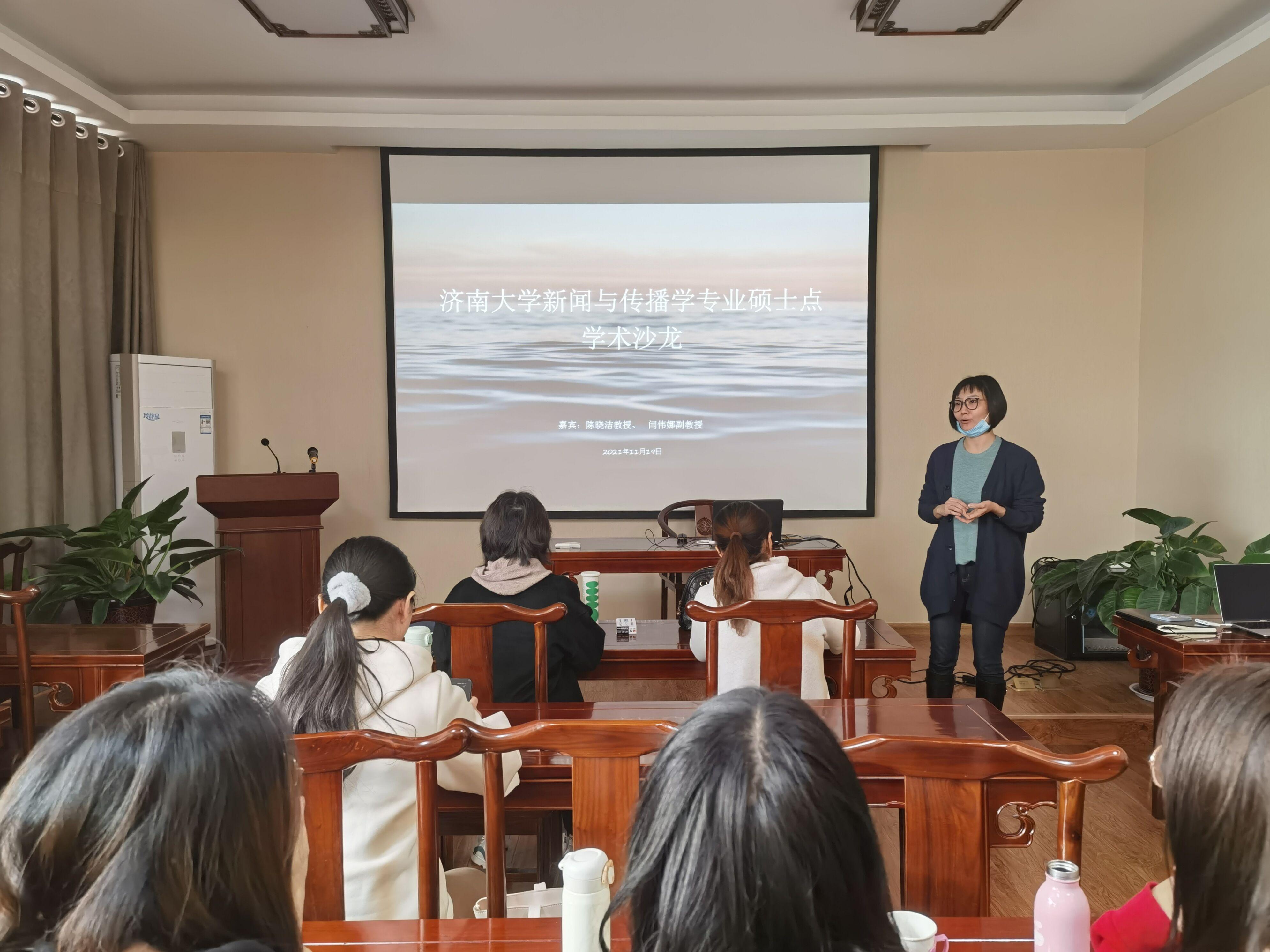 新闻与传播专业在舜耕书院举办学术沙龙系列活动。新闻与传播硕士点负责人刘水清、硕士生导师陈晓洁教授、闫伟娜副教授和2020级新闻与传播全体硕士研究生参加了本次活动。