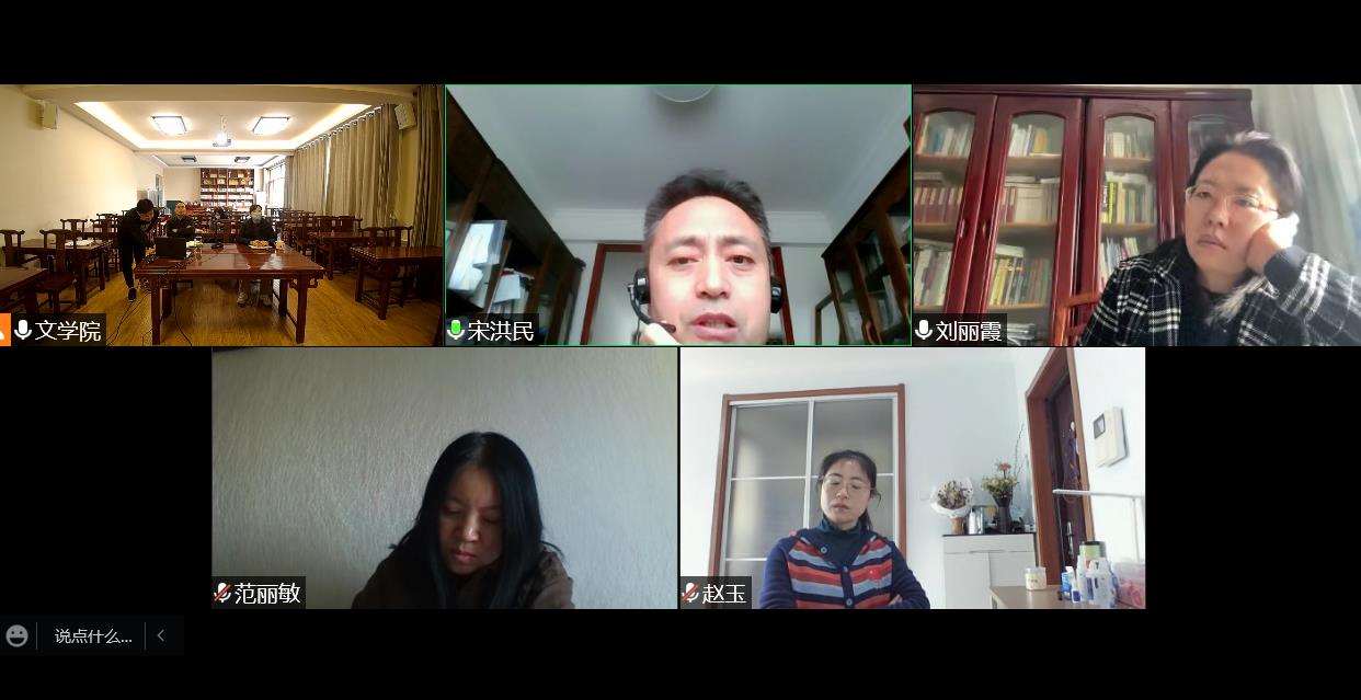 在舜耕书院召开中国语言文学学科建设交流会。会议以线上、线下结合的方式进行,院长张兵主持,宋洪民、刘传霞、刘丽霞、范丽敏、赵玉等各学科负责人及院长助理王毅参加了会议。