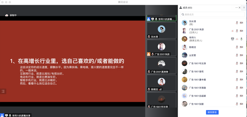 2022年4月28日晚8点,广告学专业邀请BIGDOOR大门广告创意群总监李鑫先生面向广告学专业师生进行了一场创意分享会。本次分享会主要围绕广告学专业和广告行业的底层逻辑、广告公司运作流程、大广赛参赛建议和广告人职业生涯规划等内容展开。广告学专业2018级学生、广告学专业教师陈晓洁、徐利、刘水清积极参与并认真聆听了本次分享会。