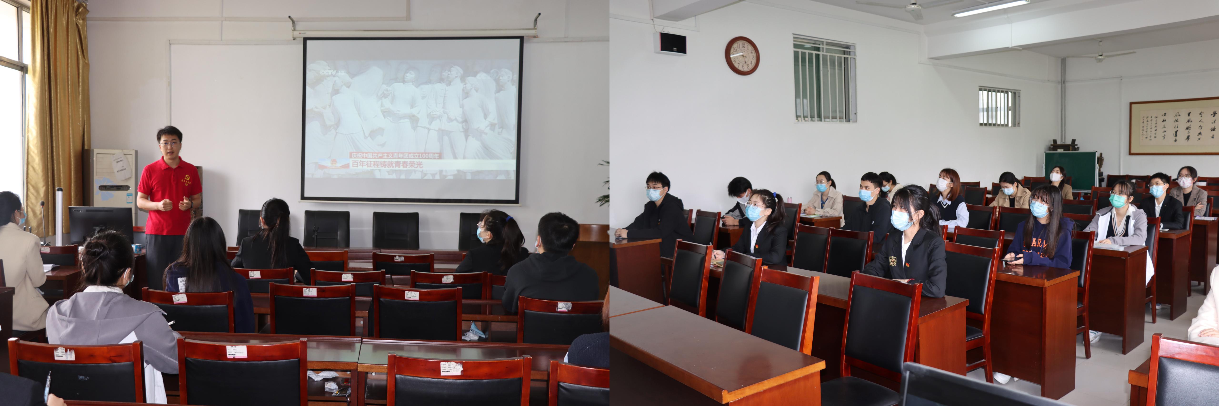 在三教418、419组织师生观看庆祝中国共产主义青年团成立100周年大会直播。