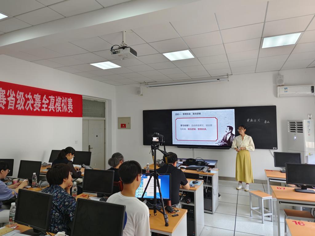 非常重视对师范生实践教学能力的培养,为备战山东省师范类高校学生(语文)从业技能大赛省赛成立指导教师团队,多次邀请经验丰富的中小学一线教师和教研员作为校外评委进行全程指导。通过本次全真模拟赛,选手们熟悉了比赛的流程,积累了比赛经验,对未来的比赛充满信心。