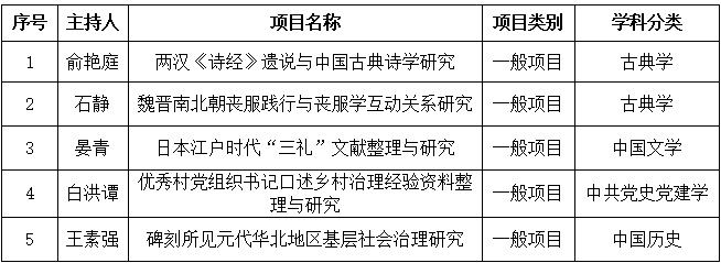 本次获批项目涵盖中国文学、古典学、中共党史党建学、中国历史四个学科领域,体现了澳门六合彩App