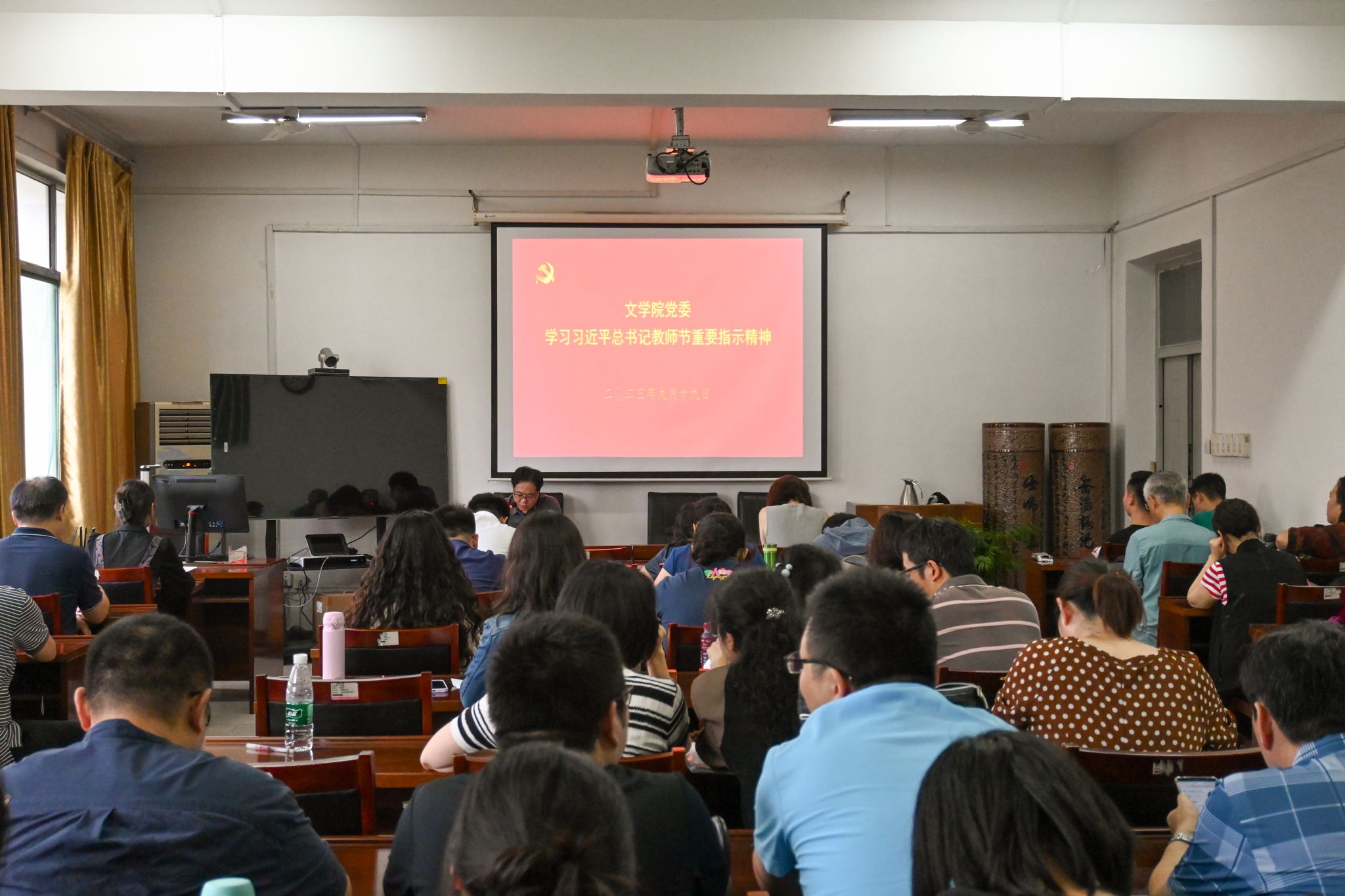 党委要求,深入学习领会习近平总书记教师节重要指示精神,并提出了两点希望和要求:一是希望全体教师以教育家为榜样,认真学习和践行教育家精神,树立“躬耕教坛,强国有我”的志向和抱负,潜心教育,培根铸魂,要坚持师德师风第一标准,按照“四有”好老师要求,不断提高自身道德修养,以模范行为影响和带动学生,做学生为学、为事、为人的大先生,成为被社会尊重的楷模,成为世人效法的榜样。在教育教学中润物无声、以文化人,在学生心中播下启蒙开智的种子,让每个学生都能发出自己耀眼的光。二是希望全体学生,尤其是师范生,作为新时代未来教师,要以党和国家对广大教师提出的期望和要求为指引,以坚守三尺讲台、潜心教书育人的“大先生”们为榜样楷模,从我做起、勤奋学习、练强本领,自觉涵育和践行教育家精神,学到真知识、练就真本领,交出“建教育强国,未来教师有为”的满意答卷。