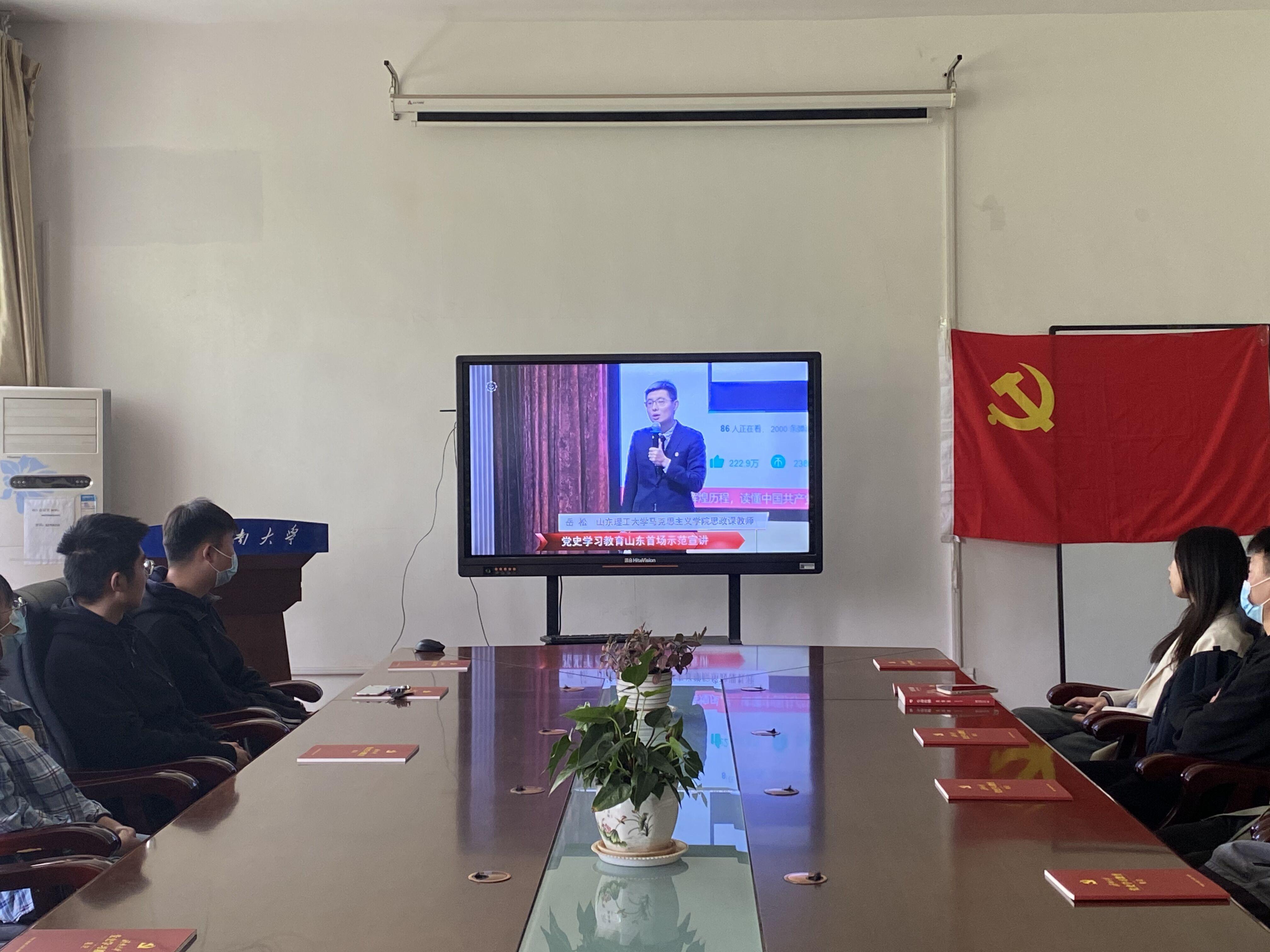 团委组织团员青年们在3教411进行直播宣讲的转播会议观看,团员青年们积极响应参与,同山东省委讲师团一道穿越历史,回到百年前,一同回顾党的奋斗历史,感悟初心使命。