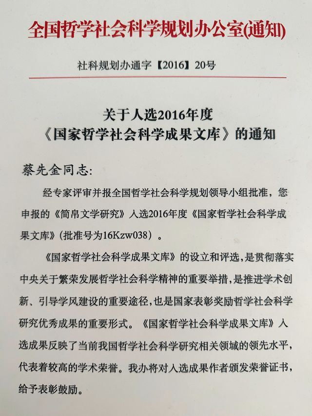 《简帛文学研究》是一项基于二十世纪以来发现的简帛文学文献之上的研究成果,入选2016年度《国家哲学社会科学成果文库》。该成果既运用简帛新史料又采用文学史“新证”以及“集成创新”法,基本上建构了一个简帛文学研究的理论框架,并在简帛神话传说、简牍诗歌、简帛辞赋、简帛散文、简帛古小说等专题研究中多有创获,有的填补了古代文学史的缺环,有的改写了现有的古代文学史,有的解决了古代文学史上的学术公案,推进了相关学科建设。